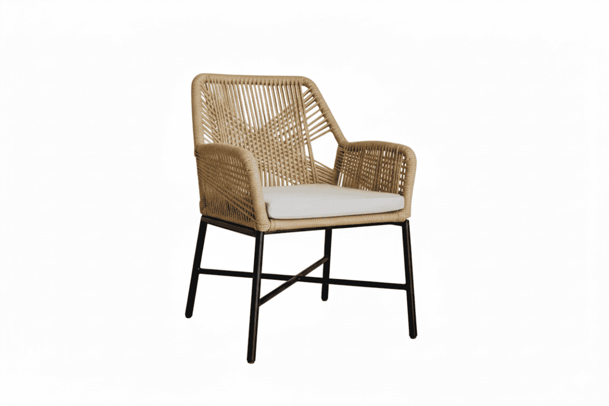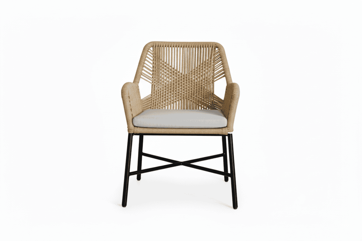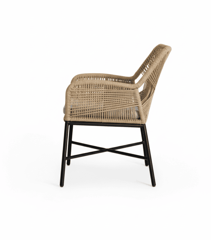 Kursi kombinasi metal dan rotan sintetis dengan konsep light & simple cocok untuk teras rumah, cafe, resto dengan nuansa natural modern.